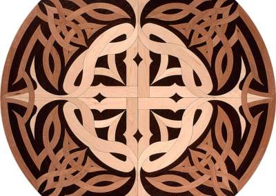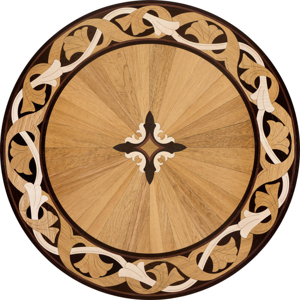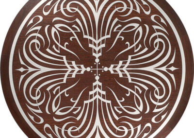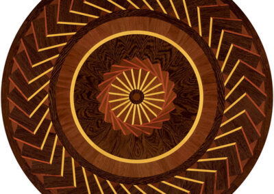 Wood medallions make striking, memorable floor accents! Medallions can be crafted in a variety of hardwoods, giving one the ability to coordinate with the other natural tones and materials in the space. Wood floor medallions are available prefinished or unfinished and can be installed in new or existing hardwood floors from 5/16″ to 3/4″ thick. Wood medallions are designed to provide homeowners with a distinctive floor design element for new construction, remodeling or restoration projects.